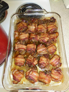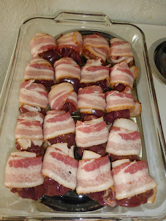 Tegnap keszitettem baconba gongyolt csirkemajat, fincsi krumplipurevel, salataval. Amiota itt vagyok kint sokat csinalok ilyet, mert leginkab hasonlit a hazai izekre. Sokszor kenyszerulok fozesre, az itteni etelek zome sajnos ehetetlen. :-(